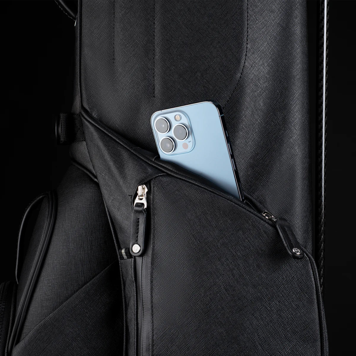 Velour-lined personals pockets on either side of the golf bag are ideal for storing valuables such as tech, jewelry, sunglasses and wallets.