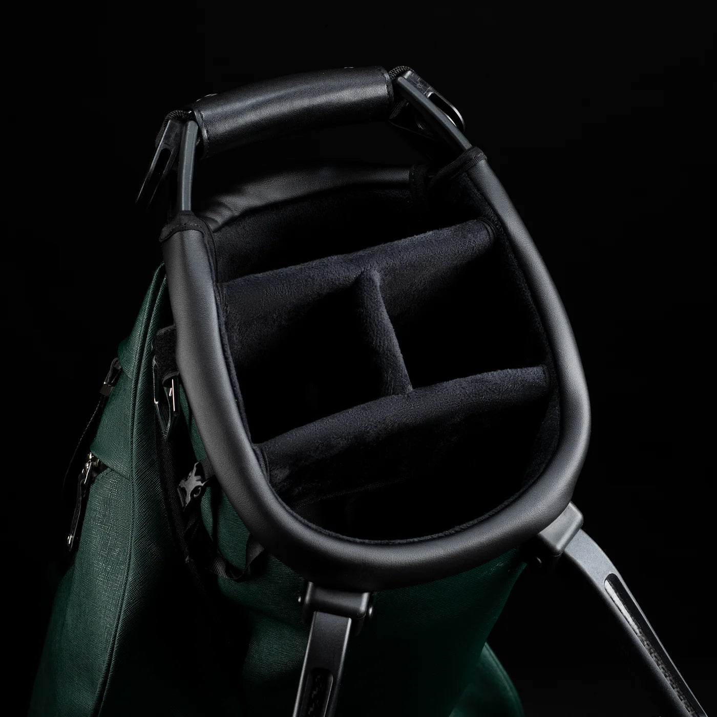 Intentionally placedhigh strap-attachment pointson the very top of the bag allows for better balance and eliminates club fallout when the bag is fully loaded and carried. This is all done while maintaining a rivetless top to prevent club damage.