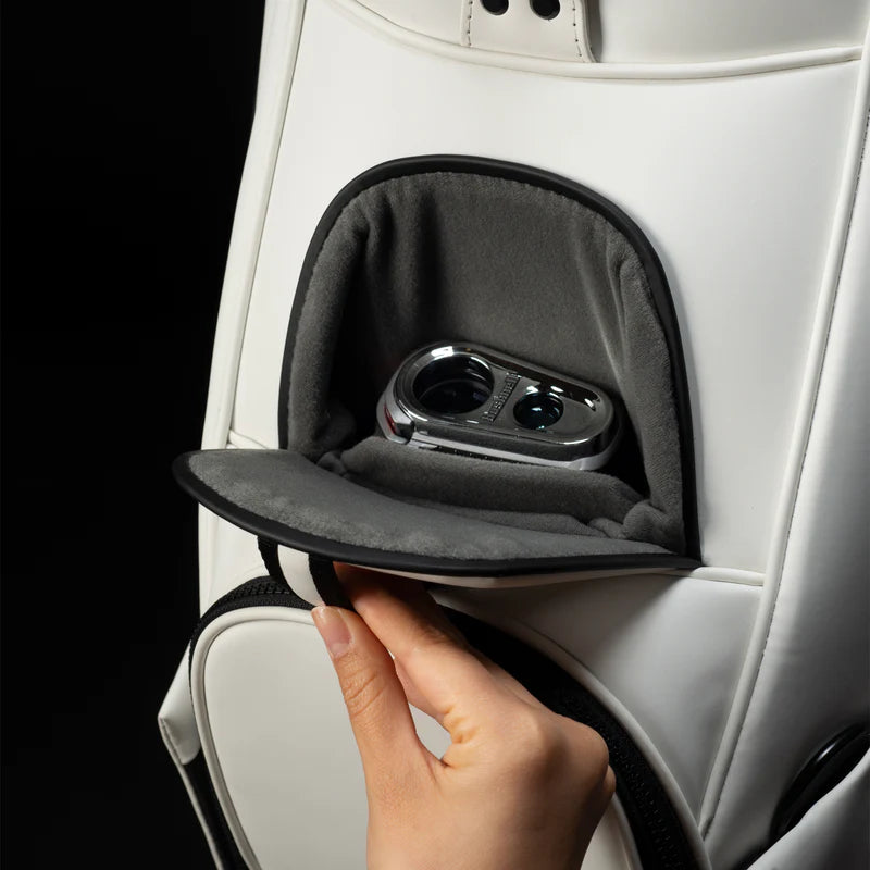 This top pocket is lined with antimicrobial, velour lining and offers purposeful organization to ensure that all golf essentials or valuables can be quickly accessed for a smooth and efficient round.